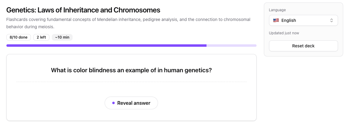 - Study guides and summaries — Already condensed, so the flashcards are focused